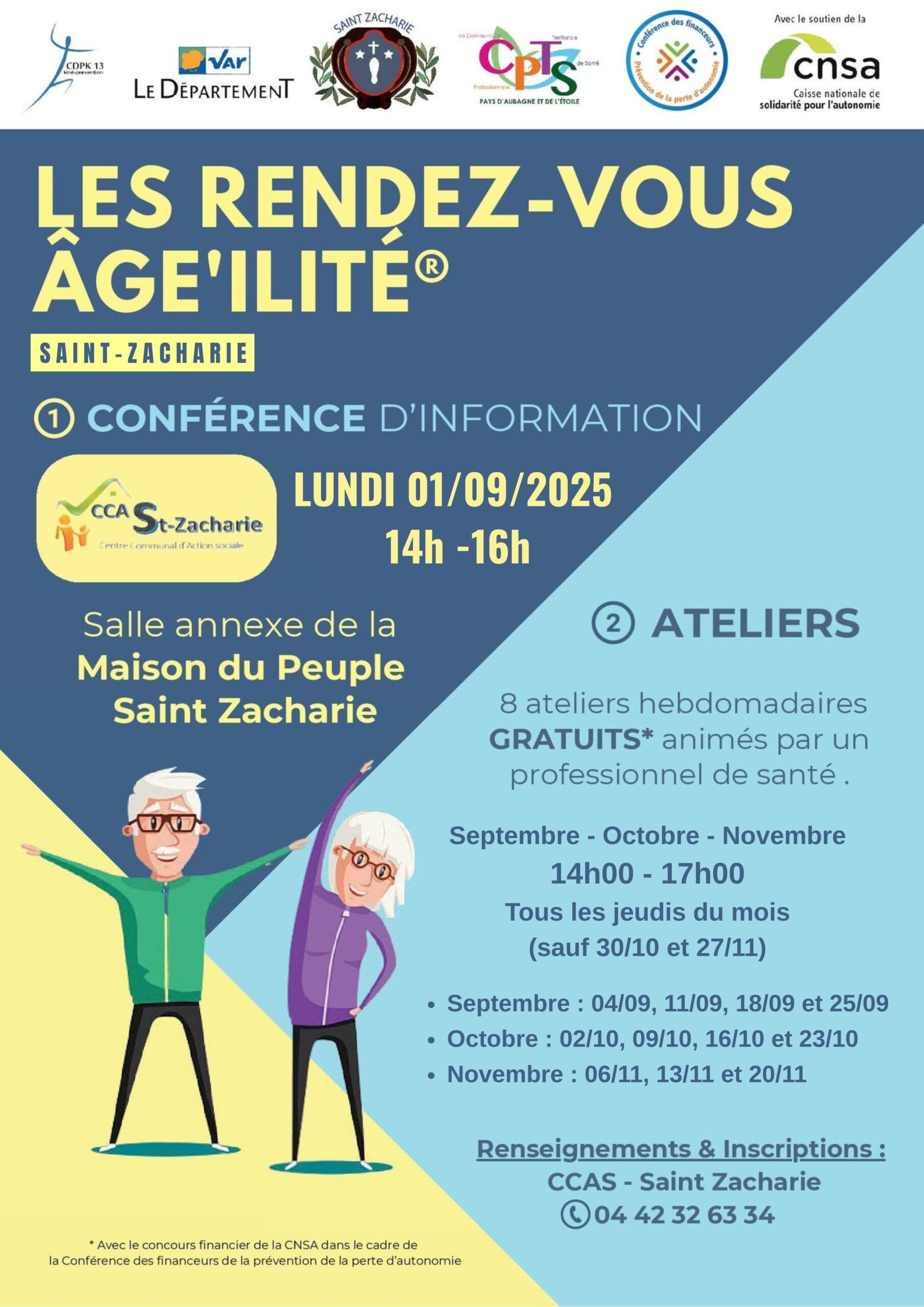 Les Rendez-Vous Âge’ilité® reviennent à Saint-Zacharie ! Le CCAS de Saint-Zacharie a le plaisir de proposer à nouveau ces ateliers ludiques et utiles, pour prévenir les chutes et apprendre des techniques simples afin d’améliorer votre équilibre et votre stabilité au quotidien. Ces ateliers sont réservés pour les jeunes de 60 ans et plus. Conférence d’information […]
